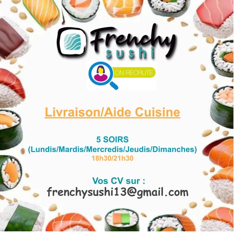 Tous les jours 17h30/21h30 101 Quartier Souque Nègre, La Destrousse 04.96.18.52.17 frenchysushi13@gmail.com