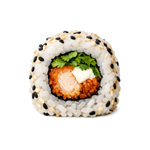 California Poulet, cheese, coriandre, riz vinaigré, feuille d’algue nori